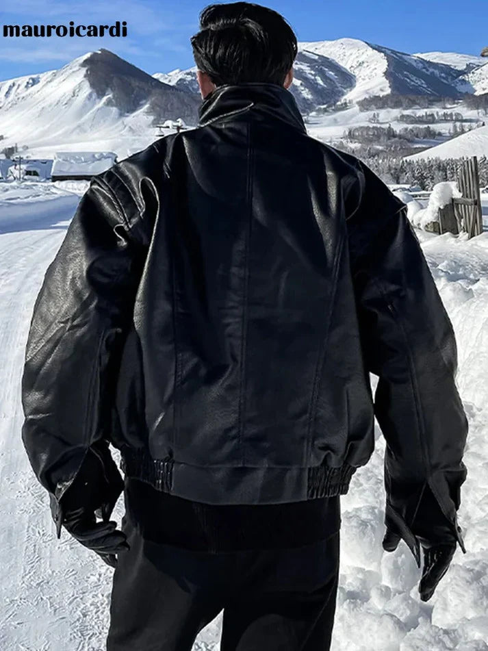 Elegant læderjakke i oversize pasform til mænd | perfekt til hverdagen