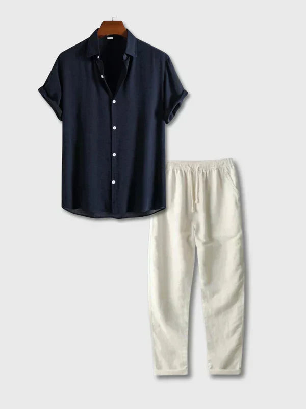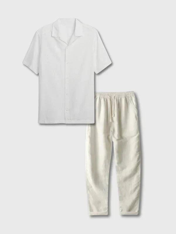 Linen Summer Set - Cannes at Night: Dette elegante sæt lavet af højkvalitets linned er ideelt til varme sommeraftener. Perfekt til et stilfuldt og afslappet look.
