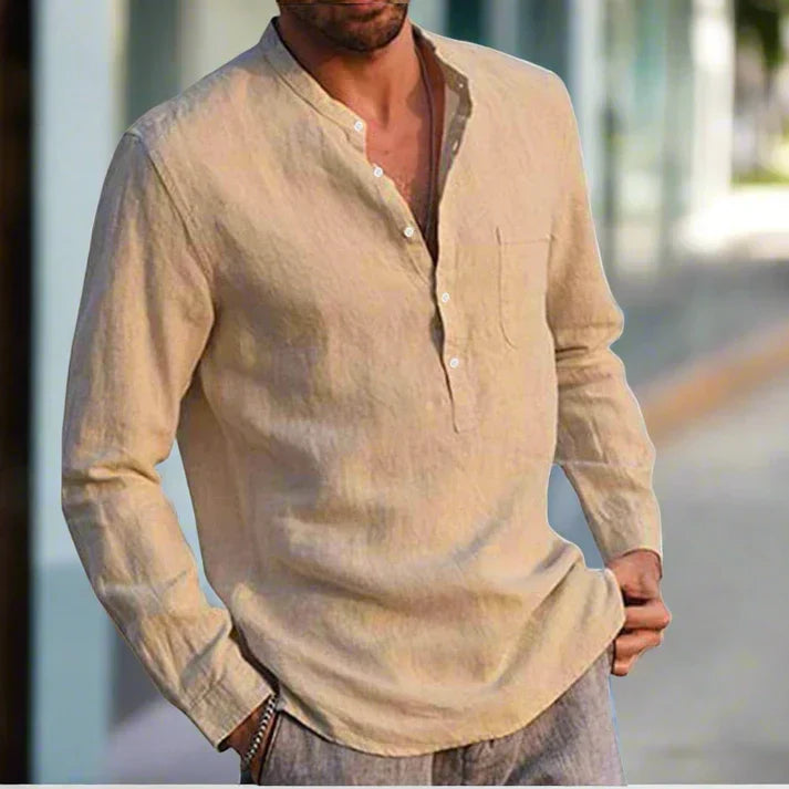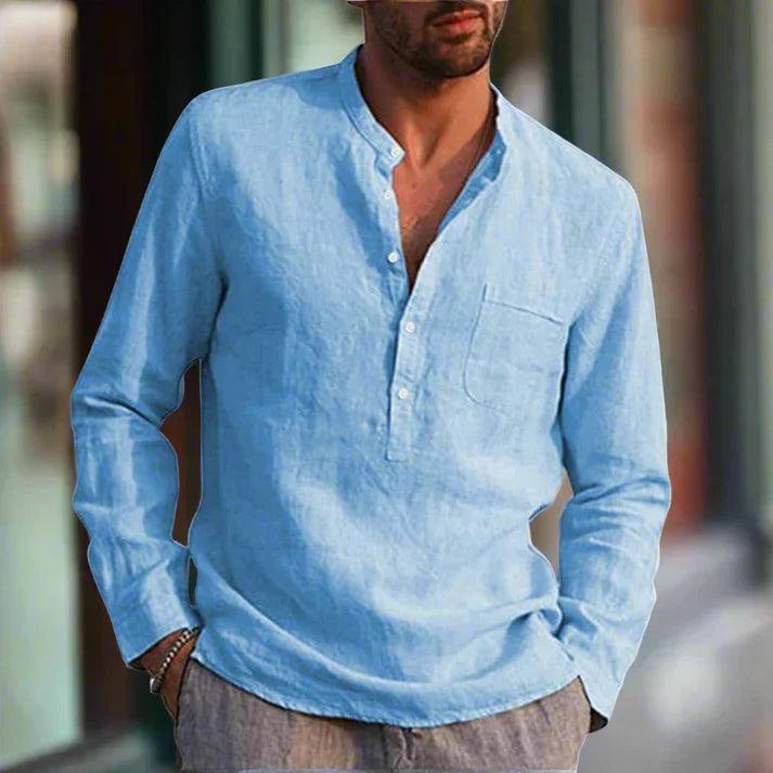 Otto er en smuk hørskjorte med en brystlomme, der imponerer med sin enkle elegance og afslappede pasform. Ideel til sommerdage og stilfulde outfits.