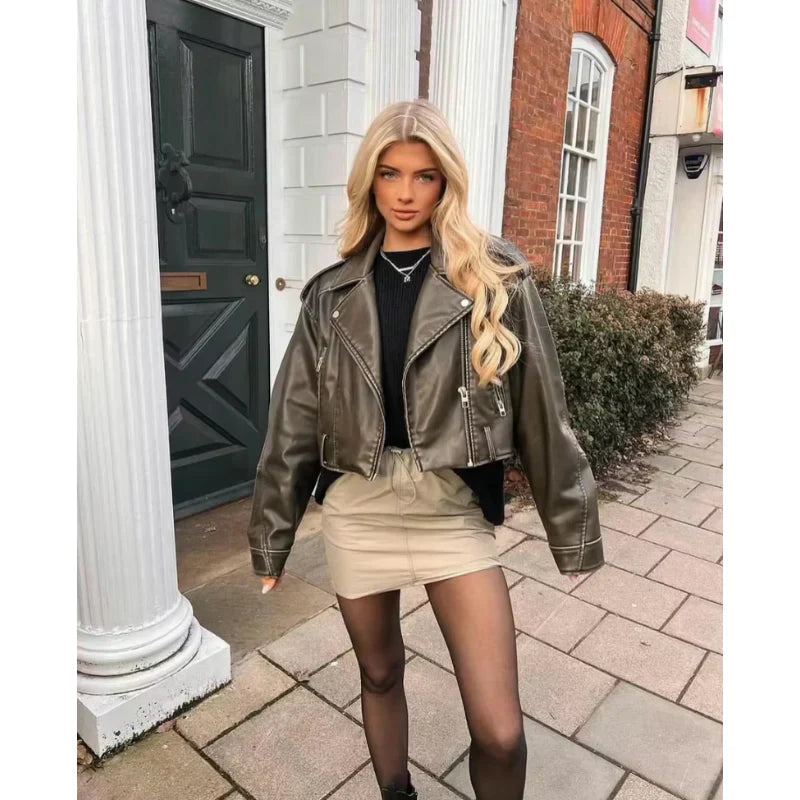 Vegansk bikerjakke til kvinder med bælte og lynlås kombinerer dristig stil med moderne komfort . Den er lavet af vegansk læder af høj kvalitet og har et klassisk bikerlook med stilfulde bælte- og lynlåsdetaljer. Med sin flatterende pasform og edgy design er denne statementjakke perfekt til afslappede outfits, byture eller hverdagsbrug.