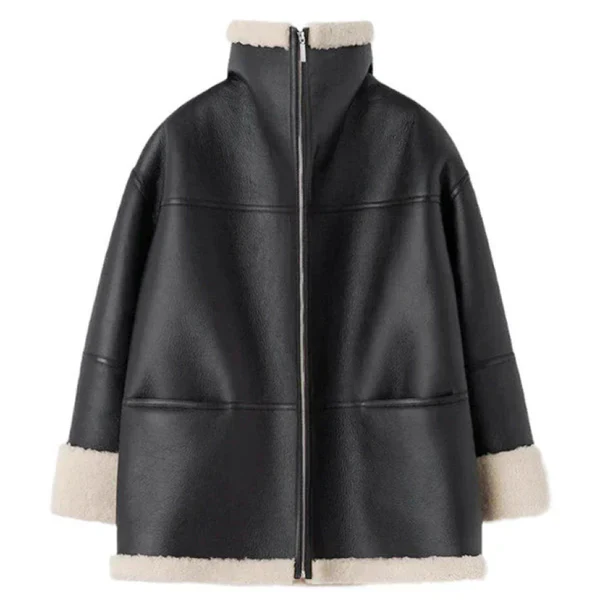Sort vinterjakke i læder med pelsfor til kvinder – Damejakken leverer dristig elegance med førsteklasses vintervarme. Den er fremstillet af elegant sort læder , har et blødt pelsforet interiør og en flatterende, struktureret pasform , hvilket gør den perfekt til kolde udflugter, aftentøj eller til at løfte din vinterstil.